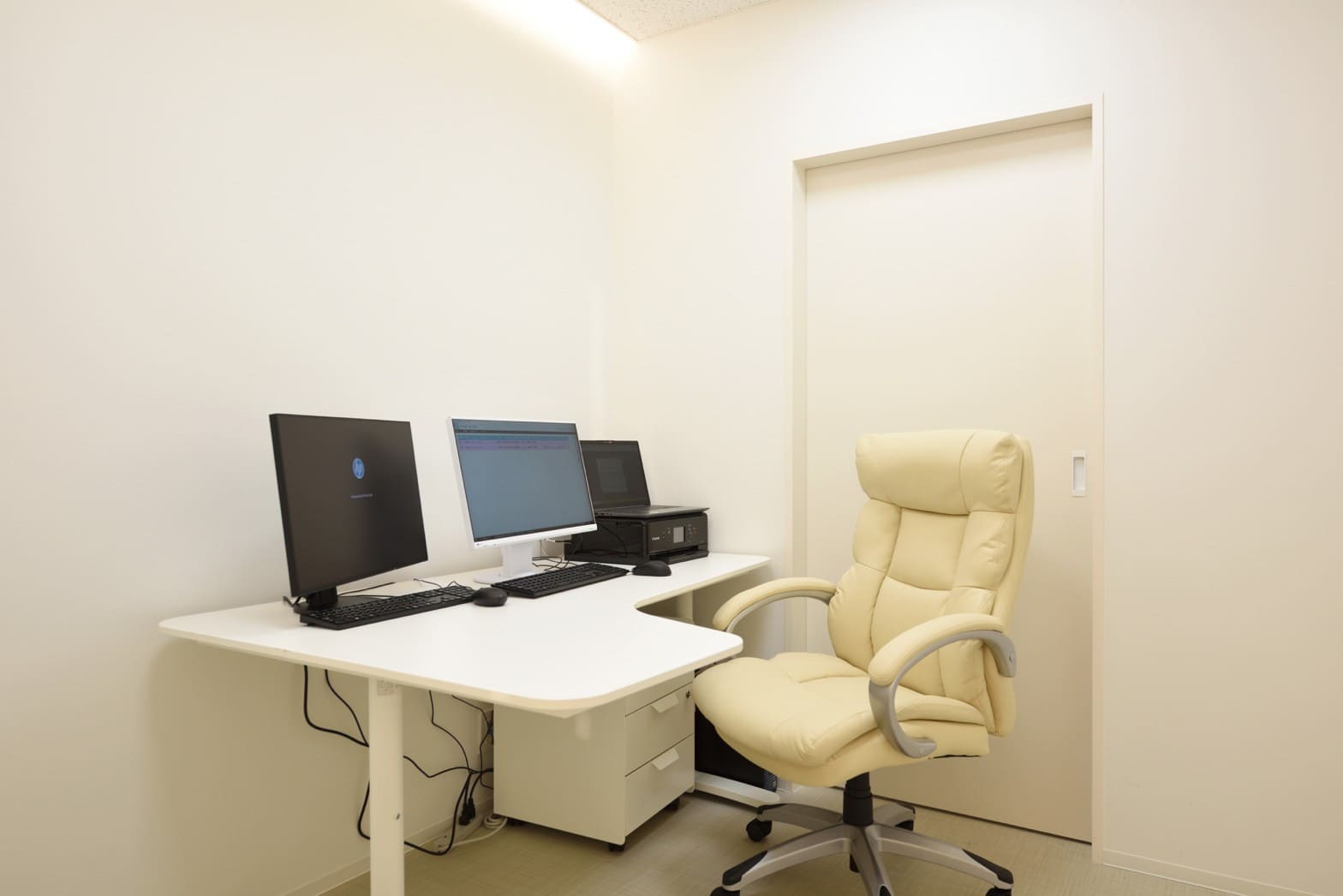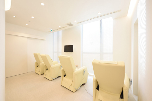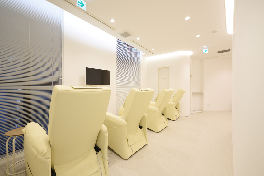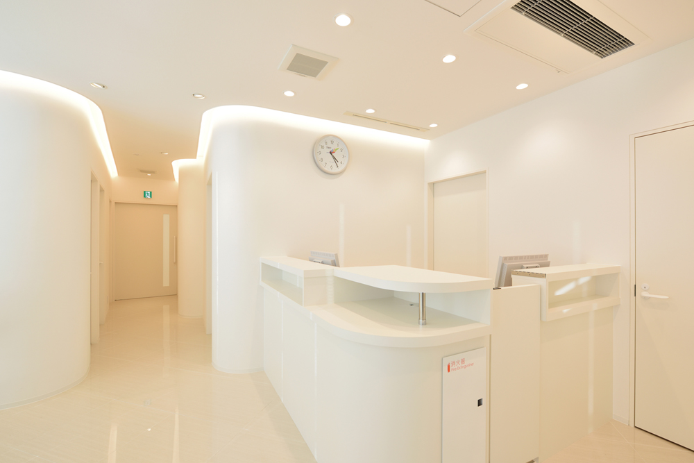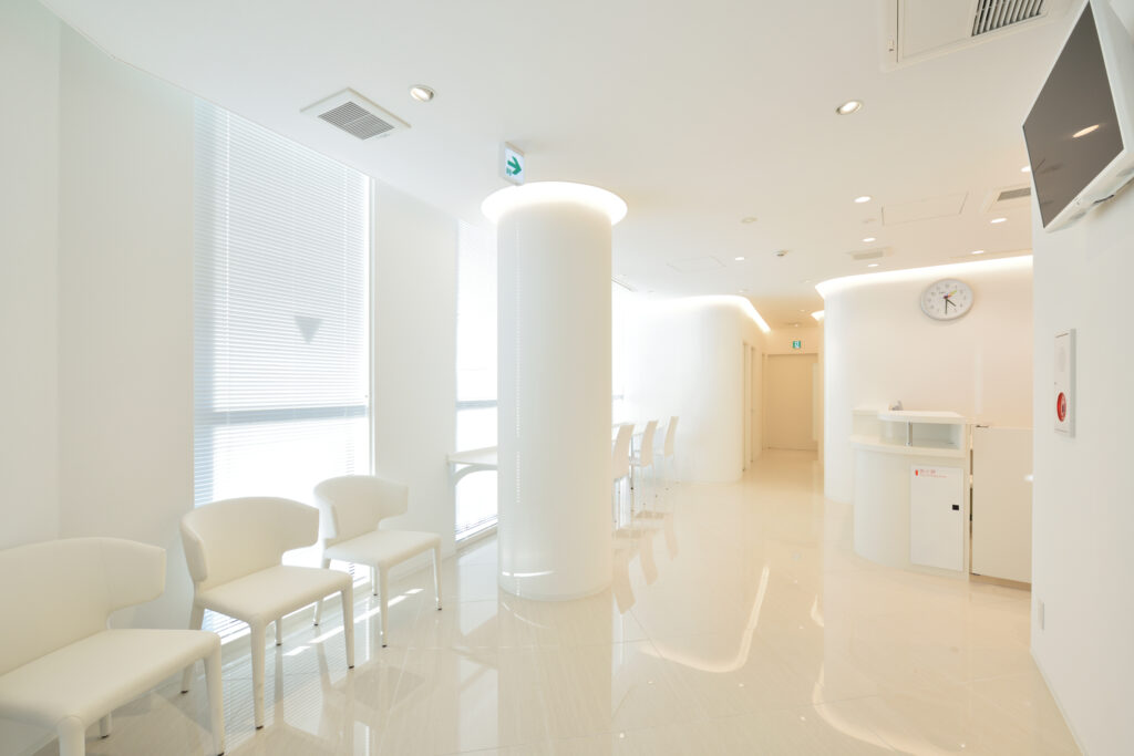 高田馬場駅のロータリーに面するクリニック。清潔感のあるホワイトを基調とした色使いと、間接照明による柔らかな光に包まれた空間。患者はふらつきながら歩くことがあることを考慮し、壁のコーナーにできる角をなくして丸くしていて、人に対して物理的にも柔らかな空間に仕上げた。