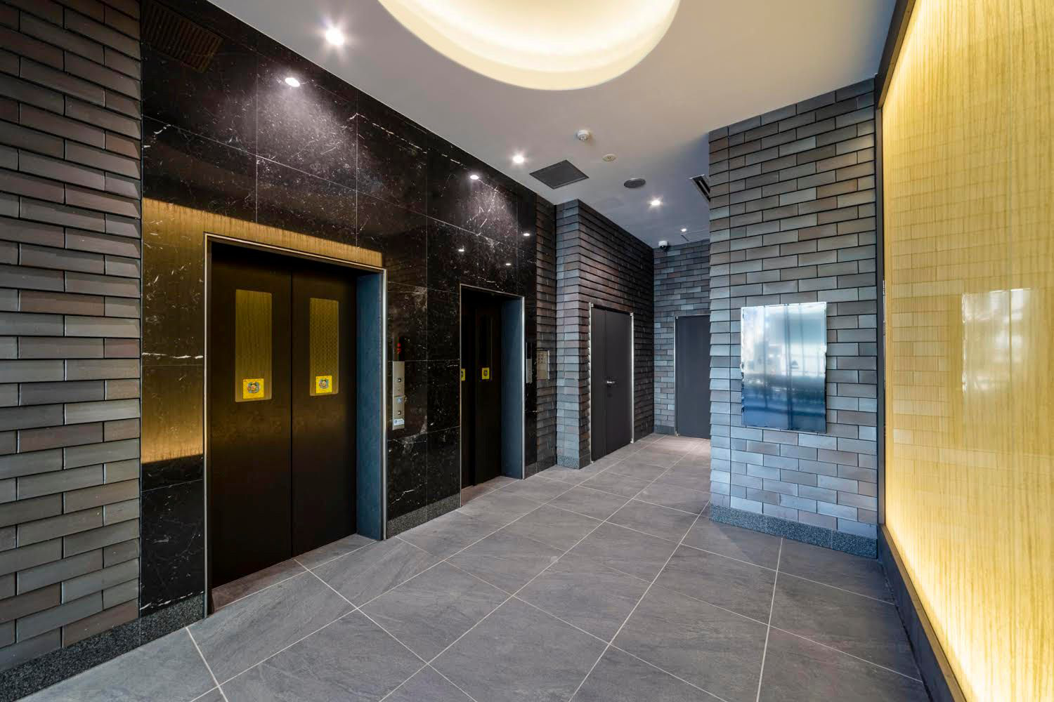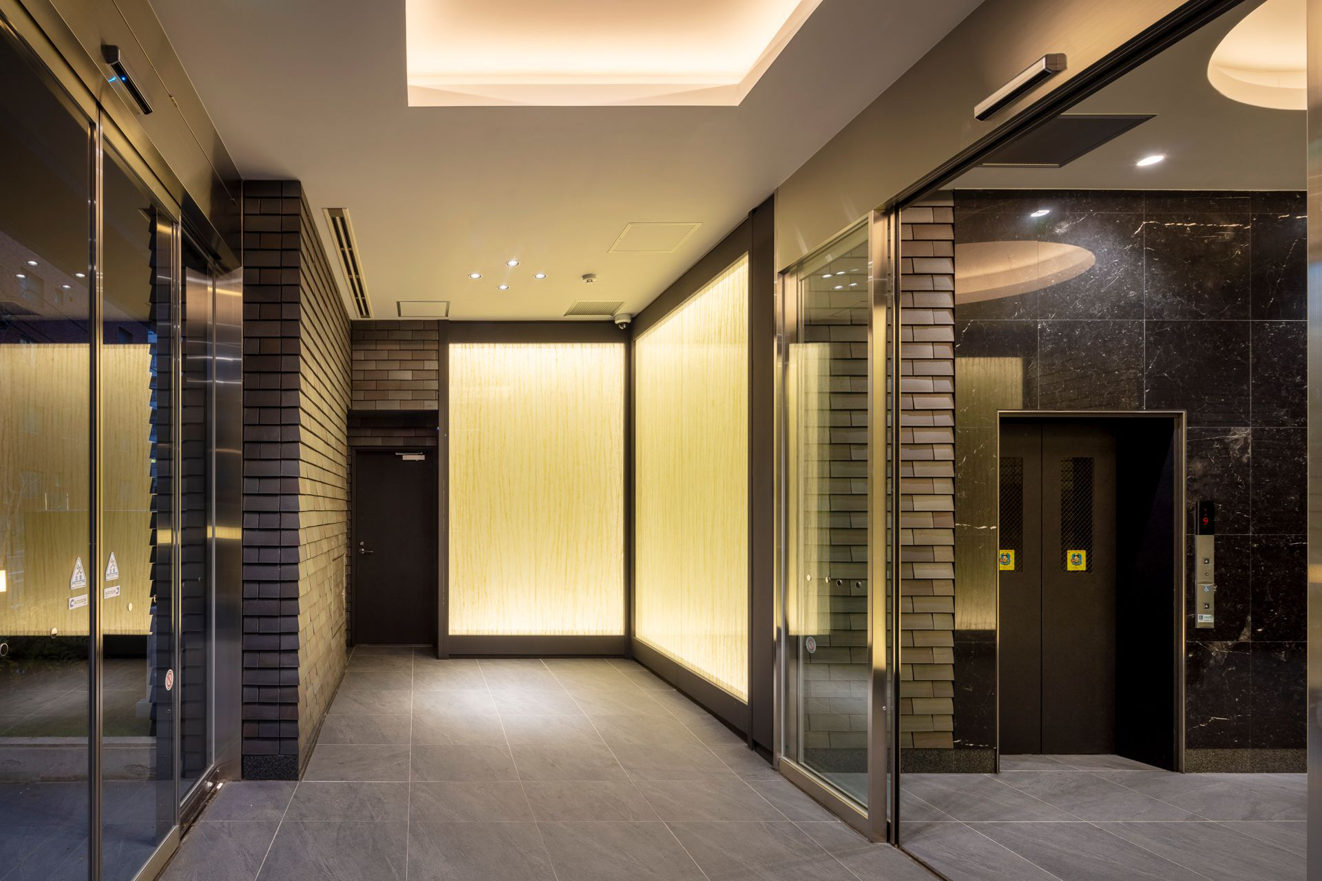 オフィス・ディーラーの入居する建築物の外観と共用部のリノベーション物件。