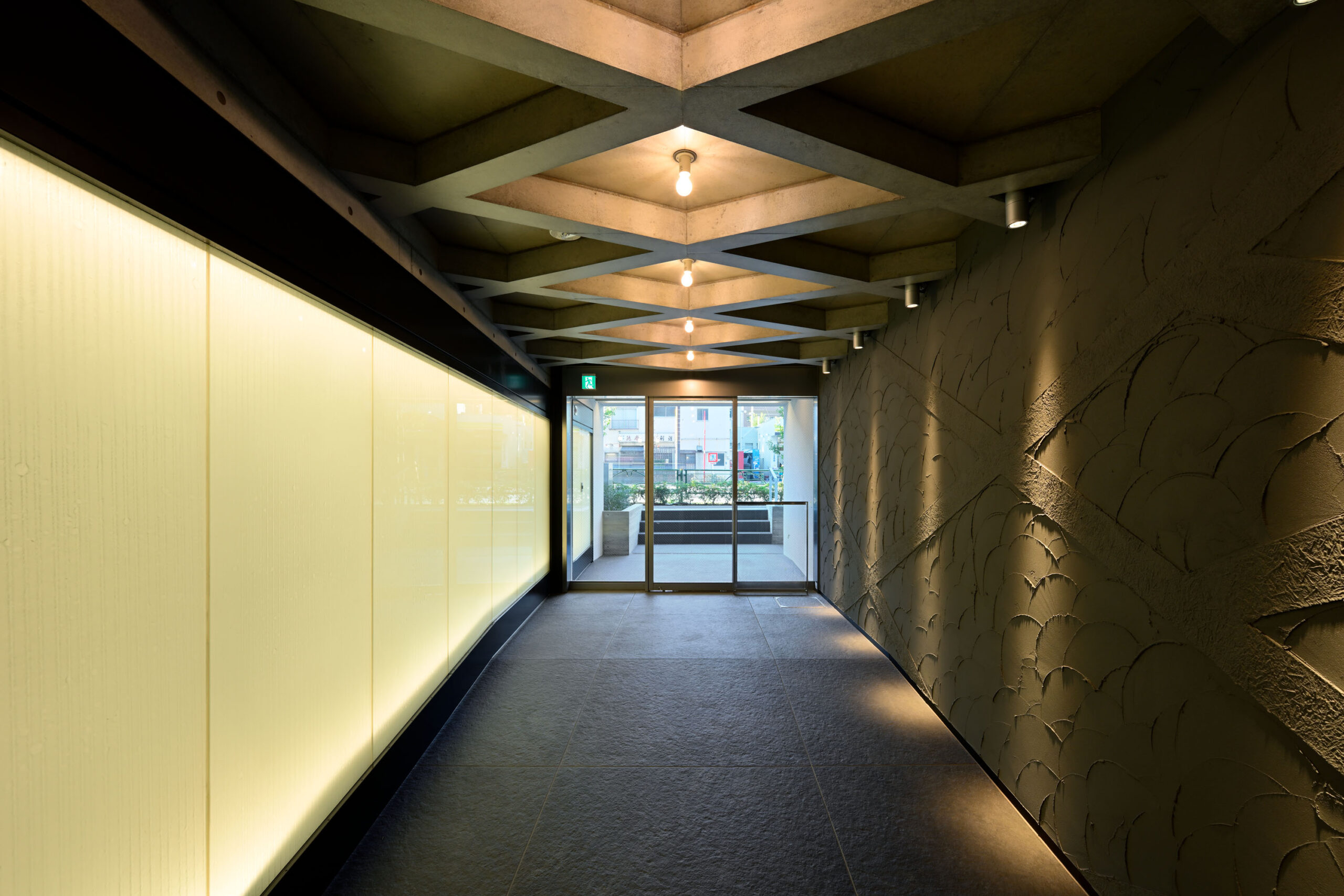 妙正寺川に面する住戸はエアコン室外機をロの字配棟内側の吹抜けに設置しており、バルコニー手摺を透明ガラスにしても景観に悪影響を与えないようにしながら、手摺に身を乗りだすことなく川の水面を望むこと可能にした。従前の和風懐石ホテルや地域環境、妙正寺川の歴史に敬意を払いながらデザインを構築している。
