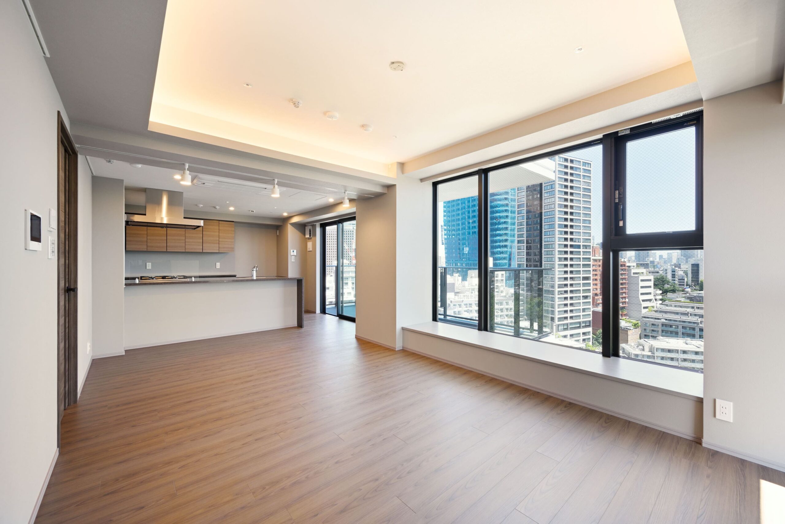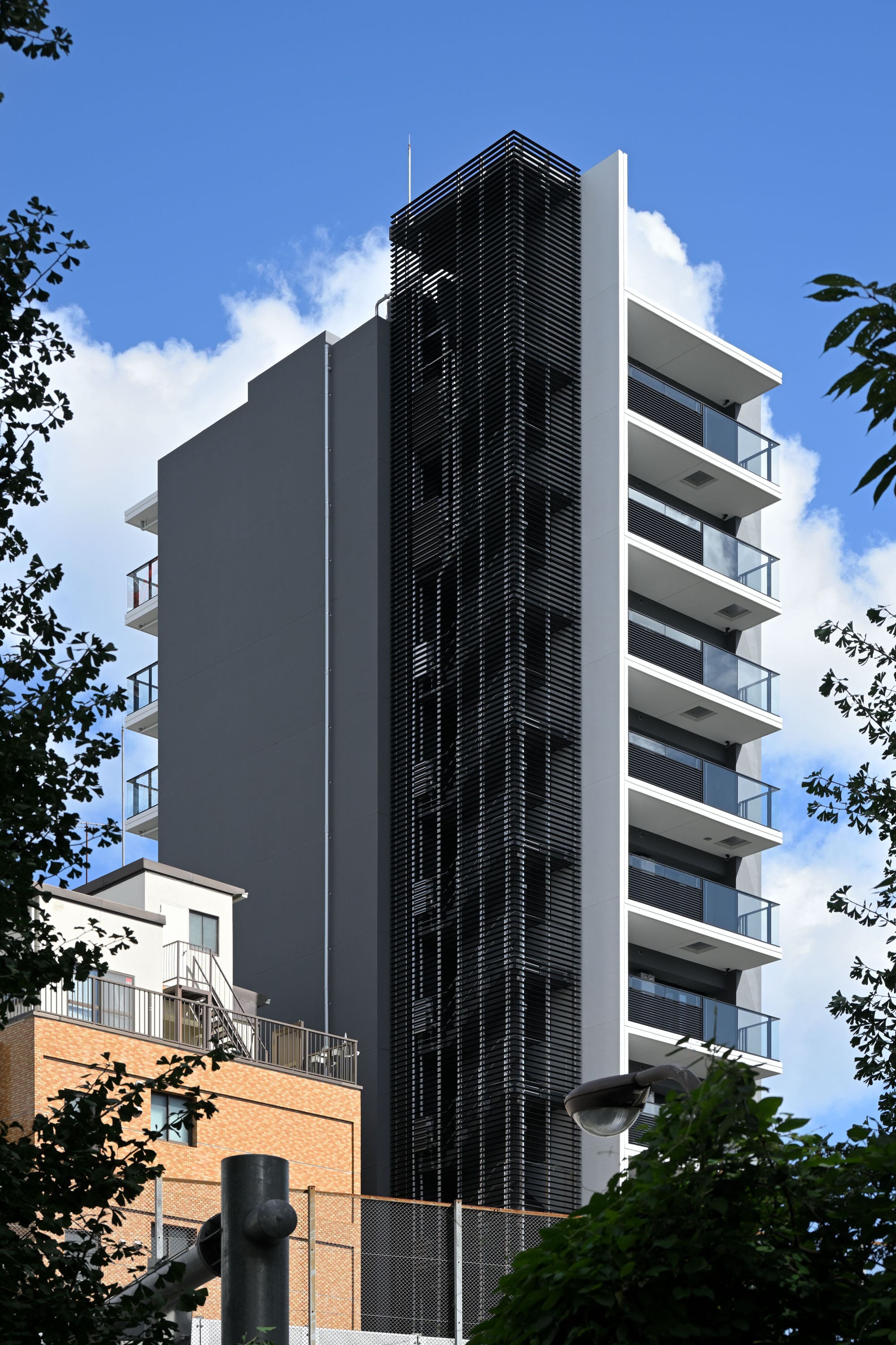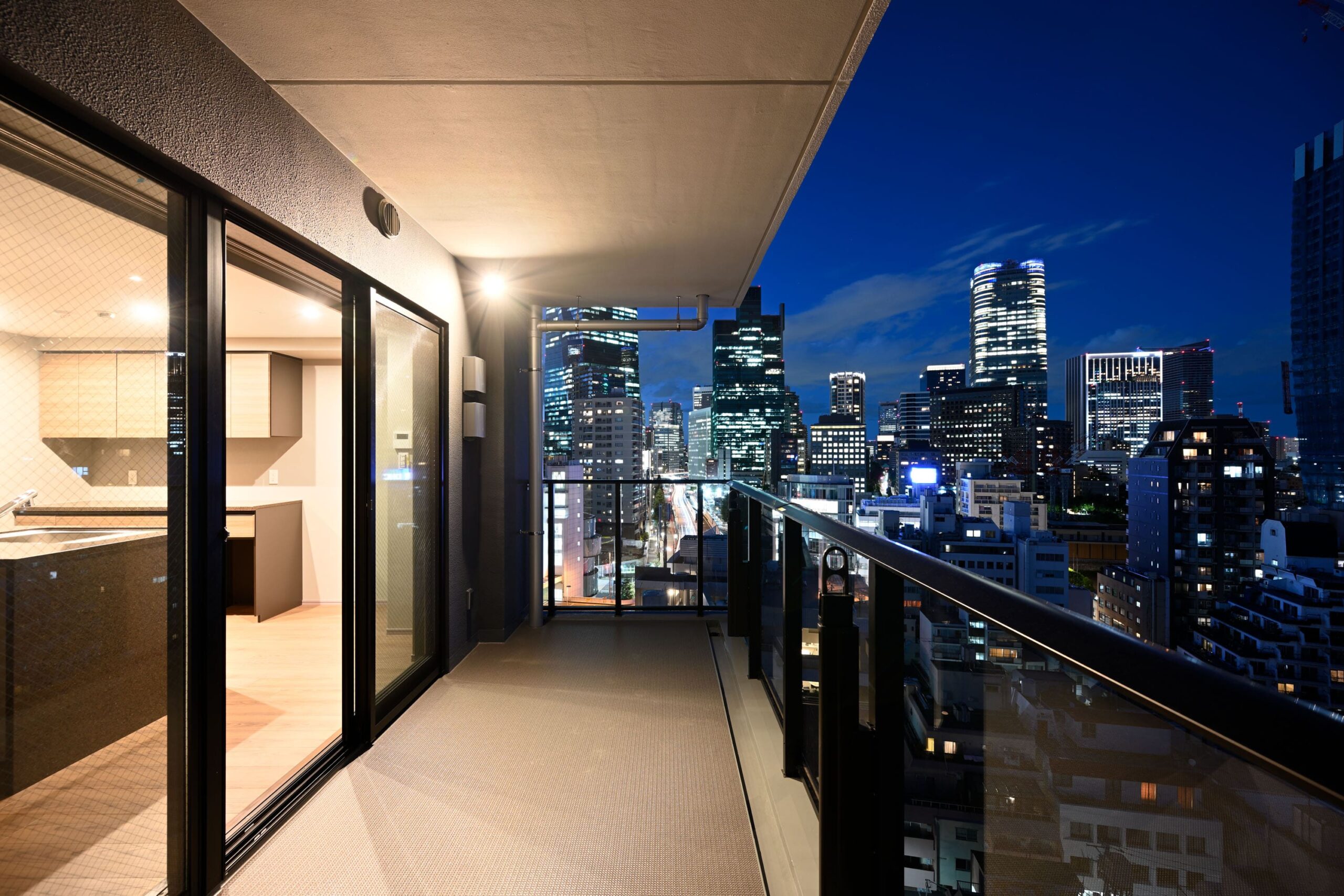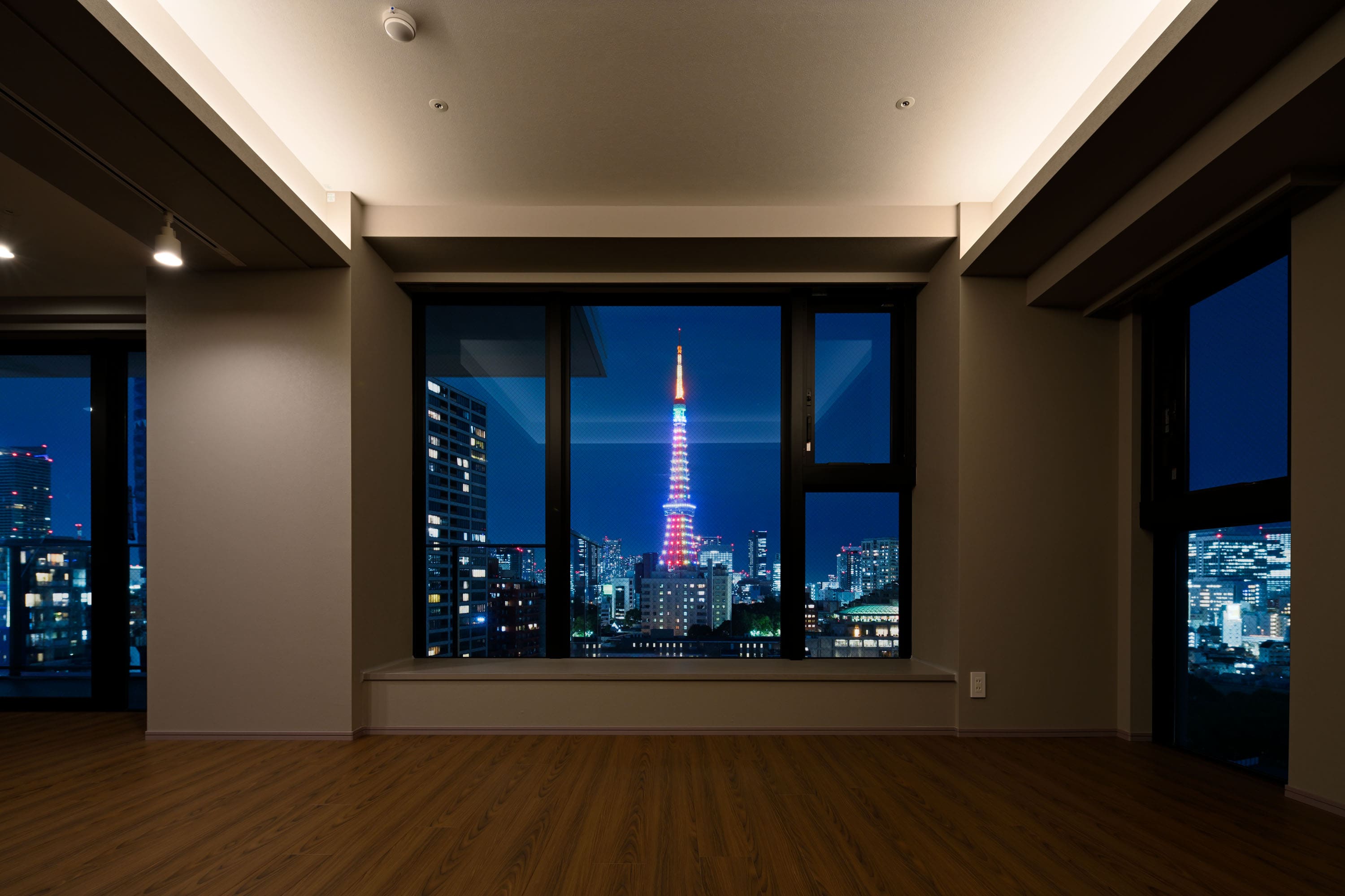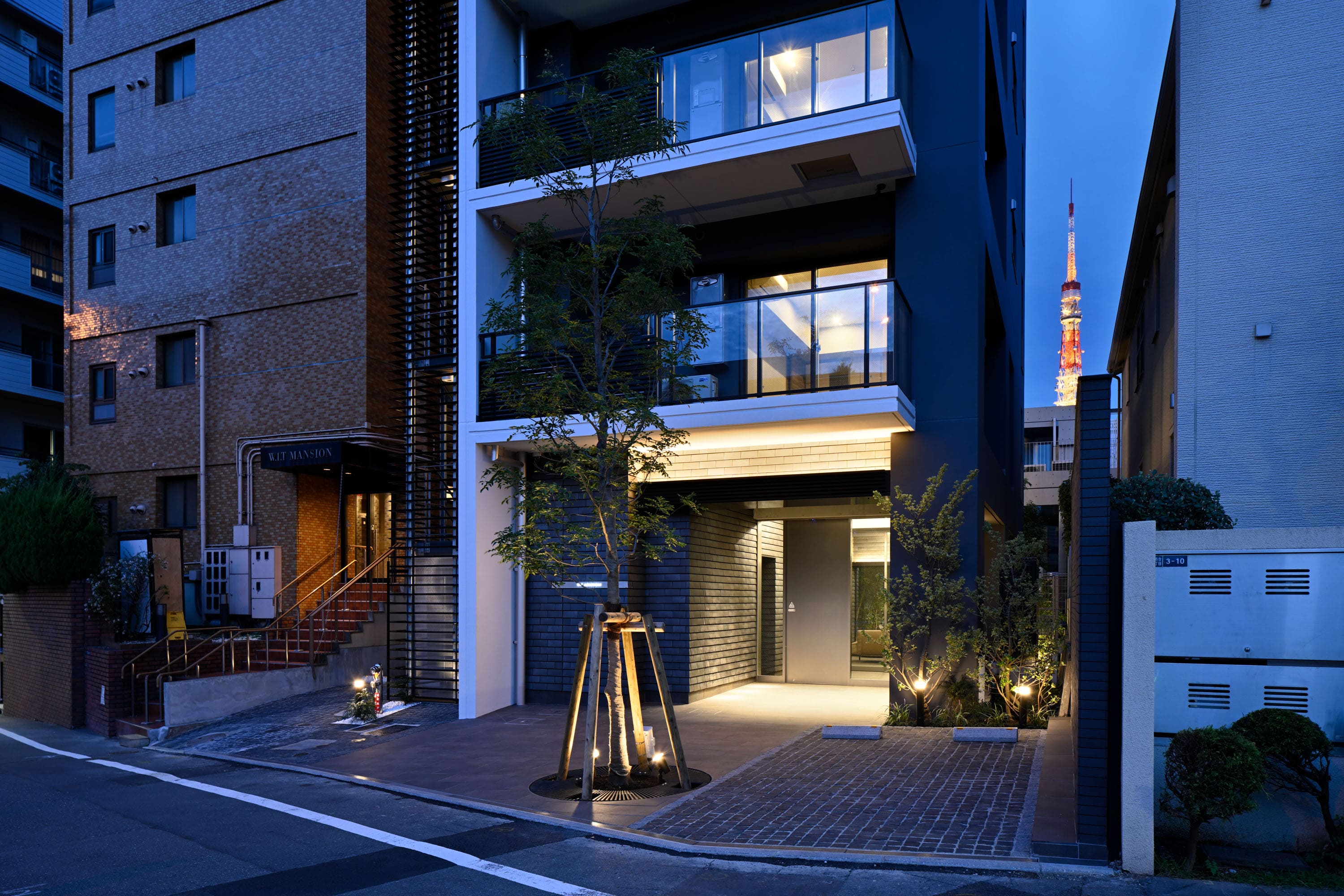 高速道路及び地下鉄に接する幹線道路に面しているが、東京タワーへの眺望と、六本木方面の眺望を取り込むため、1フロア1住戸としたプライバシー重視の住宅。